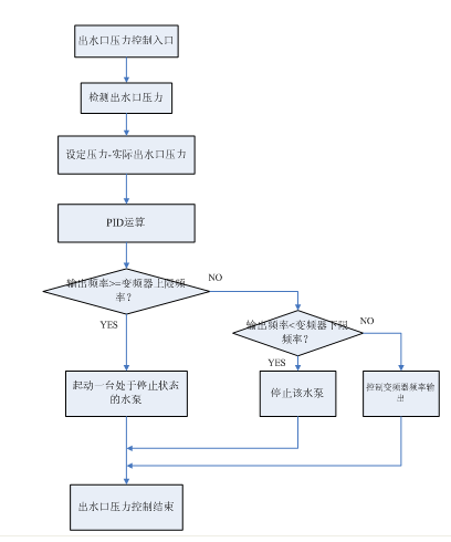 3.通過實(shí)時(shí)檢測出水口的壓力,系統(tǒng)自動計(jì)算所需投入水泵的個(gè)數(shù)及運(yùn)行頻率,以保證用戶用水壓力的恒定,同時(shí)系統(tǒng)的輸出功率最小。