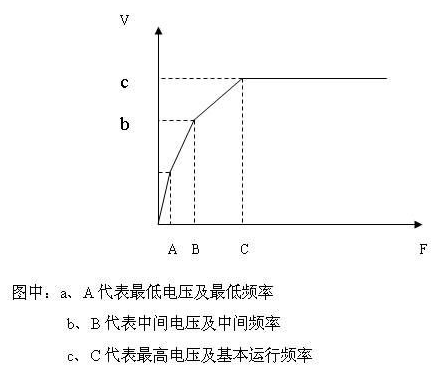 (B、b)點的調節(jié)則直接影響設備洗滌時的運行電流,這是非常重要的一點。如果(A、a)與(B、b)點之間的斜率大,即V/F曲線坡度陡,則運行電流會很大,但坡度太緩也不行,這里需要根據(jù)經(jīng)驗來調節(jié)。