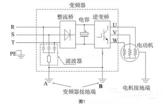 有的現(xiàn)場(chǎng)使用變頻器控制電機(jī),會(huì)出現(xiàn)漏電問(wèn)題,漏電電壓有幾十伏到二百伏電壓不等。針對(duì)這個(gè)問(wèn)題,在這里特對(duì)此故障產(chǎn)生的原因進(jìn)行理論的分析和說(shuō)明如下。