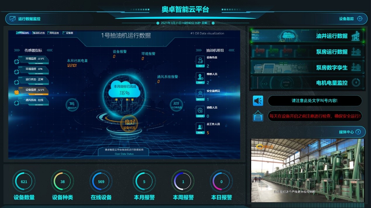 奧卓智能云平臺(tái)除了可以對(duì)監(jiān)控設(shè)備狀況,原創(chuàng)修改設(shè)備參數(shù),還能作為綜合媒體平臺(tái)使用??蛻?hù)可以將設(shè)備信息、監(jiān)控畫(huà)面、公司內(nèi)部公告信息等進(jìn)整合到駕駛艙界面中,以圖形化顯示,不但更直觀且美觀,還節(jié)省了大量的人力物力投入,為企業(yè)的健康發(fā)展保駕護(hù)航。