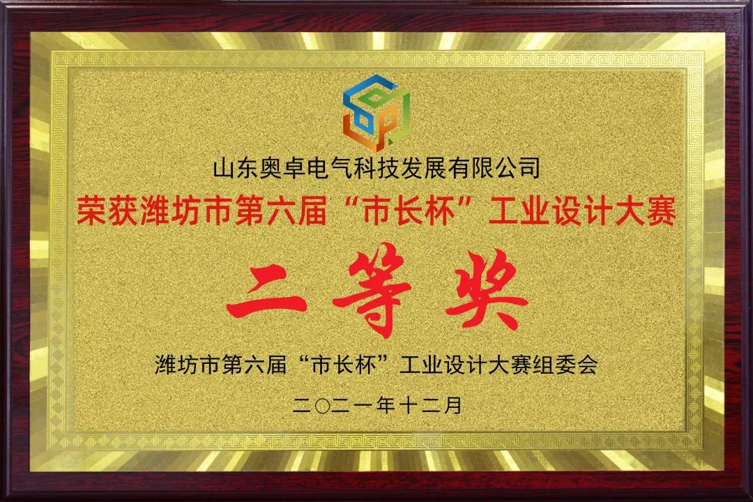2021年12月28日,濰坊市第六屆“市長杯”工業(yè)設計大賽頒獎典禮在富華國際會議中心隆重舉行。山東奧卓電氣科技發(fā)展有限公司的參賽作品“高效節(jié)能的電氣控制智能化驅動系統(tǒng)”項目經(jīng)過參賽作品征集和資格審查、作品評審及答辯、社會公示、展示點評等環(huán)節(jié)的層層篩選,在幾百件作品中脫穎而出,榮獲濰坊市第六屆“市長杯”工業(yè)設計大賽二等獎。等領導出席頒獎典禮并為獲獎單位頒獎。